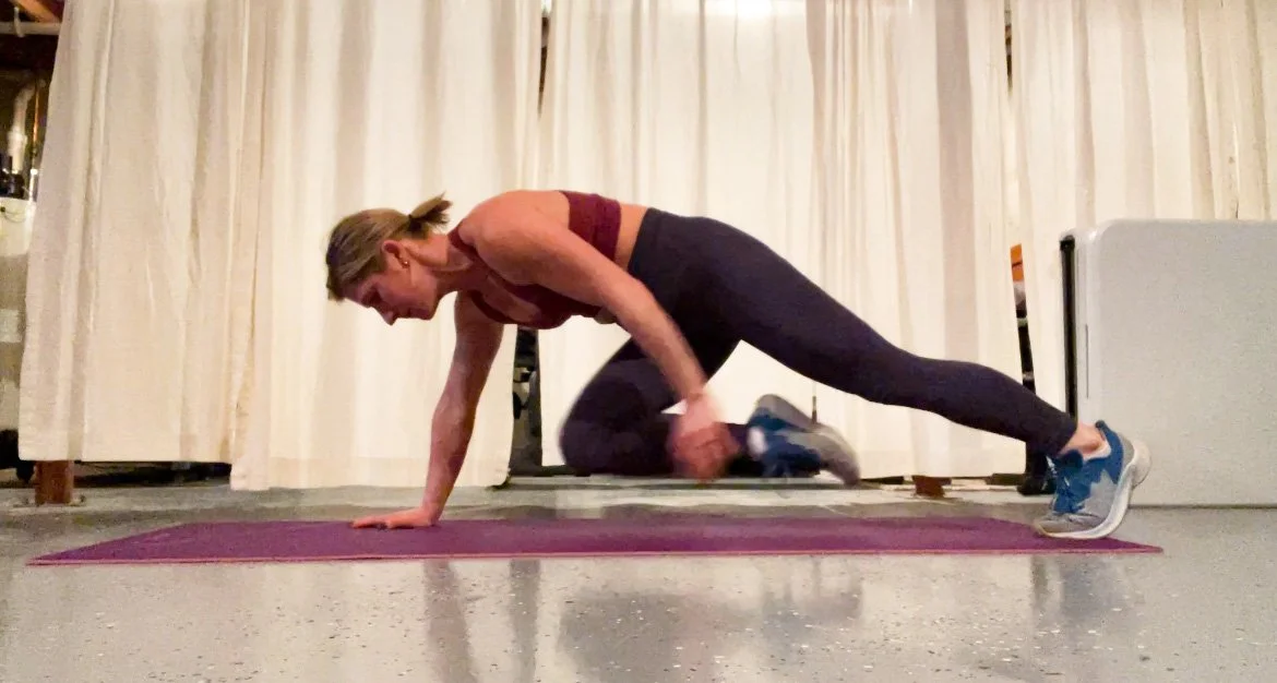 Position yourself in a high plank and reach opposite hand to opposite ankle. Alternate for a set of 30, rest for 15 and repeat 5X.